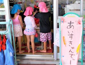 3つのコーナーで楽しんだ後は、園長先生のアイスキャンディ屋さんで、冷たいアイスキャンディをもらい、おいしくいただきました。あっという間の楽しい時間を過ごしました。